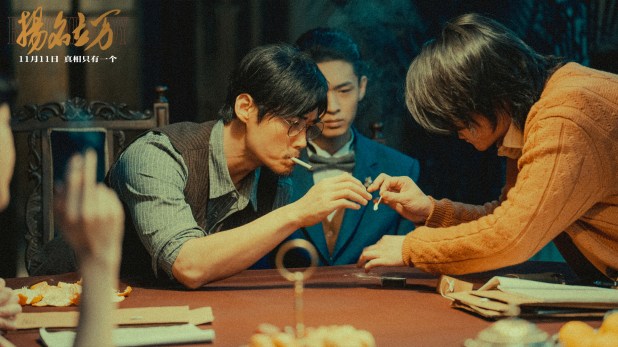 先逆着思路从伏笔推断:电影里的特写型伏笔还是挺多的,但是偏偏有一个「刀仙」提了两次没有对应,意味着什么?「夜莺」这个名字听着像不像一个代号?片子里出现了这么多次meta,说要把真想拍成电影,那么电影里的师兄妹联手诛魔又是什么意思?尹正去追歌女的时候商人开玩笑说“还以为你看见凶手了呢”,同样也是暗示。如果能看到这些暗示,那么就会意识到编剧就差把真相拍你脸上了。